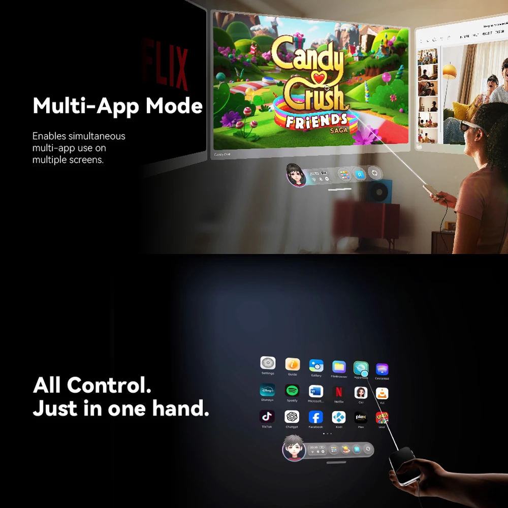 Rokid AR Spatial (Max2+Station2) Smart AR Glasses Global Version HD 3D Smart Glasses Space Projection Screen Real Time Translate【Proof of Receipt】:To protect your rights, please record an unboxing video when you receive the package. This will help us more effectively solve after-sales problems such as theft or damage during transportation. Thank you for your cooperation.【Order Delivery Time】: If your order is placed on Friday, please be aware that due to the holiday in the warehouse, delivery may not start until next week. We would like to thank you for your understanding and patience. If you have any questions, please feel free to contact us and we will help you as soon as possible.Rokid AR Spatial(Max2+Station2)【Enhanced clarity across the board】The clarity of the Rokid Max 2 has been dramatically improved. Based on customer feedback about the lack of edge clarity, we have completely addressed this weakness. The new model has dramatically improved edge definition, eliminating image blurring and providing greater overall clarity, ensuring a premium visual experience.【Superior Image Quality】Experience a stunning 215" virtual screen at a 6-meter distance, delivering sharp, high-contrast visuals powered by advanced Micro OLED displays. The Rokid Max 2 AR glasses offer an immersive visual and auditory experience, making them the ultimate portable solution for movies, online concerts, gaming, aerial footage, and productivity tasks.【Expansive Vision and Vivid Brightness】Break free from visual constraints with a 50° wide field of view (FOV) for a more immersive perspective. Enjoy ultra-smooth visuals with a 120Hz refresh rate, while the adjustable 600 nits brightness ensures vivid, lifelike imagery for a truly captivating experience.【Optimized Nose Pad Design】The Rokid Max 2 features a significantly improved nose pad with an airy cushioning design. This innovative element prevents the glasses from slipping during wear and reduces feelings of fatigue. The redesigned nose pad ensures that the glasses remain stable and comfortable even after extended use, providing users with a more customizable and relaxed wearing experience.【Personalized Vision Adjustment】Supports up to 600 degrees of myopia,Rokid Max 2 is designed for all users, including those with nearsightedness (currently, astigmatism is not supported). Effortlessly fine-tune the adjustment dials on top of the glasses to achieve optimal comfort and clarity, elevating your movie and gaming adventures to a new level.Users with myopia greater than 600° will need to purchase separate prescription lenses.【Compatibility】The Rokid Max 2 AR Glasses do not require internal charging or batteries. Instead, they are powered directly via USB-C from a compatible with most electronic devices (e.g., mobile, iphone 15 series iOS and future Type C models most Android phones, Windows laptops, Ipad since 2020, Mac, Switch, Steam Deck, PS4/5, and Xbox Series X/S).【Wearing Comfort】A seamless fusion of minimalist elegance and innovative technology, delivering a superior texture and feel. Weighing just 75g and featuring a precisely balanced front-to-back distribution, it guarantees a snug, comfortable fit for virtually every face shape.【Top-notch audiovisual experience】AR Max 2 is equipped with HIFI high-quality audio, allowing you to enjoy a theater-quality entertainment experience at home, on the road, or wherever you like, making it an outstanding portable AndroidTV.【HDCP Content Protection】The Rokid Max AR glasses support HDCP for seamless content protection, ensuring secure and seamless streaming of your favorite movies, shows and games.【Professional customer service】Rokid offers a comprehensive after-sales system and a highly skilled service team. If you have any questions about our product, you can reach out to our service team at any time for assistance and solutions.